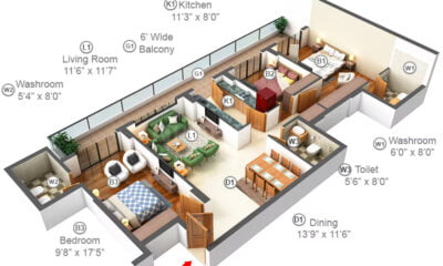 3 BHK Flat Apartment For Sale In Palam Vihar Gurgaon Block D @ 2808 Sq Ft.