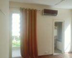 Semi-furnished with modular kitchen, wardrobes, geyser, fans, exhaust fan, microwave, and curtains