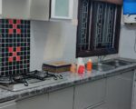 Semi-furnished with modular kitchen, wardrobes, geyser, fan, exhaust fan, stove, lights, and air conditioning