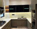 Modular kitchen with chimney and stove
