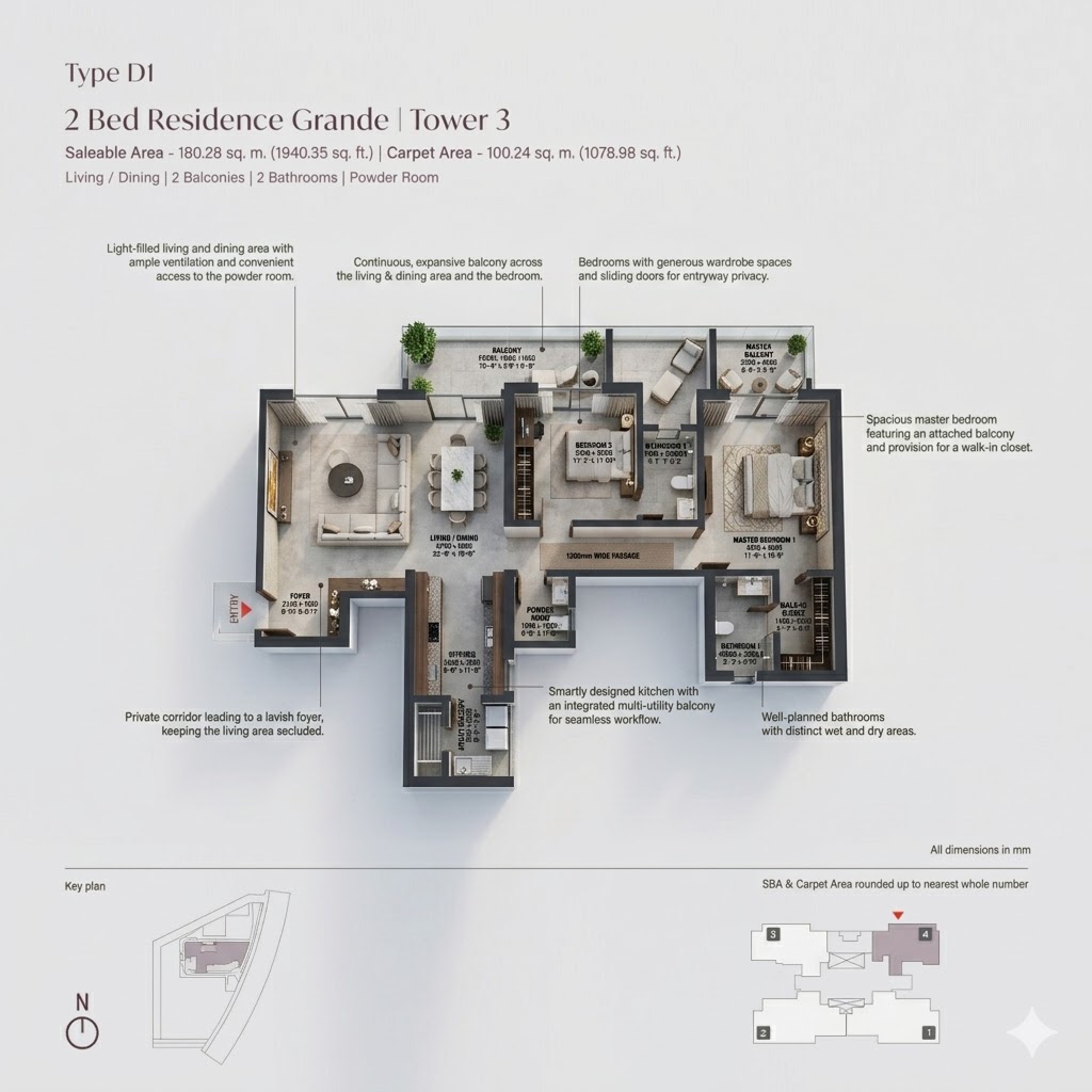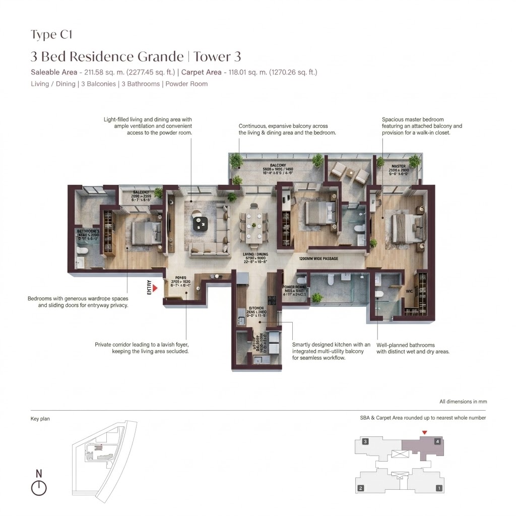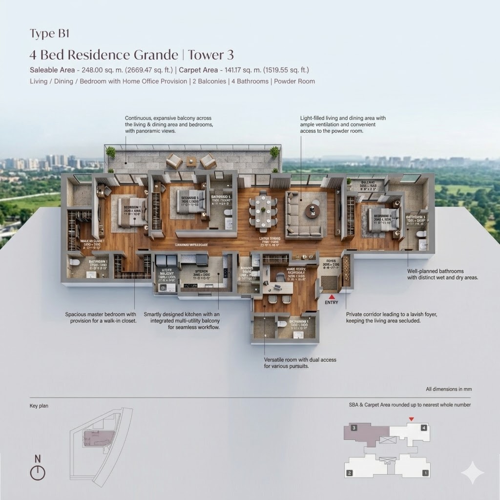 - -Offers spacious 3 BHK, 4 BHK, and premium configurations designed for modern families